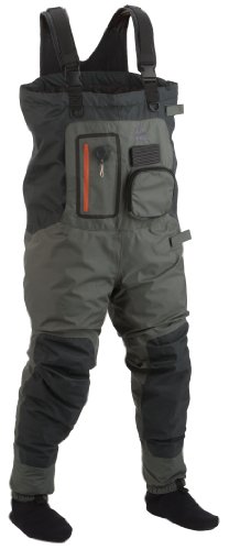 The Hodgman Sawbill Creek Insulated Stockingfoot Chest Wader is insulated and breathable, featuring a new 150g quilted insulated liner. It's as warm as 5mm neoprene, but with the added benefit of being breathable -- so it keeps you warm when standing still, and cools you off when you're active. The Sawbill Creek Wader features an easy on/off no-bunch liner, broad back suspension, and padded suspenders, for a great fit and long-lasting comfort. Reinforced knees prolong the life of the wader, while the neoprene socks with gravel guards keep you comfortable, dry and protected. For convenient storage, there's a waterproof pocket, removable fly patch, and retractable zinger.